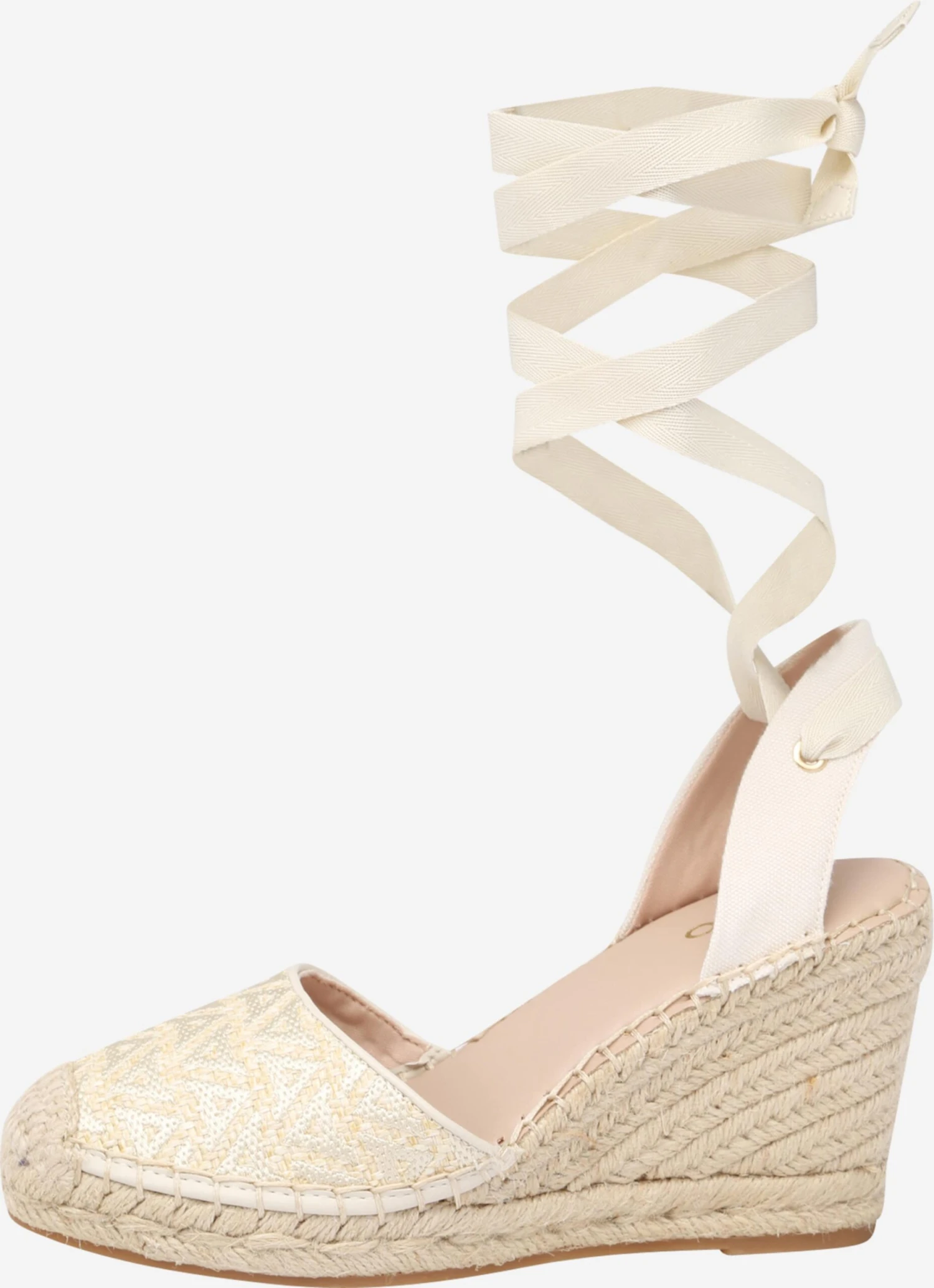 EffenSleehakMet plateauRonde neusVeteringProfielzolenHak/zool met raffia-lookOp staal nadenMet textuurMetalen oogjesTextiel