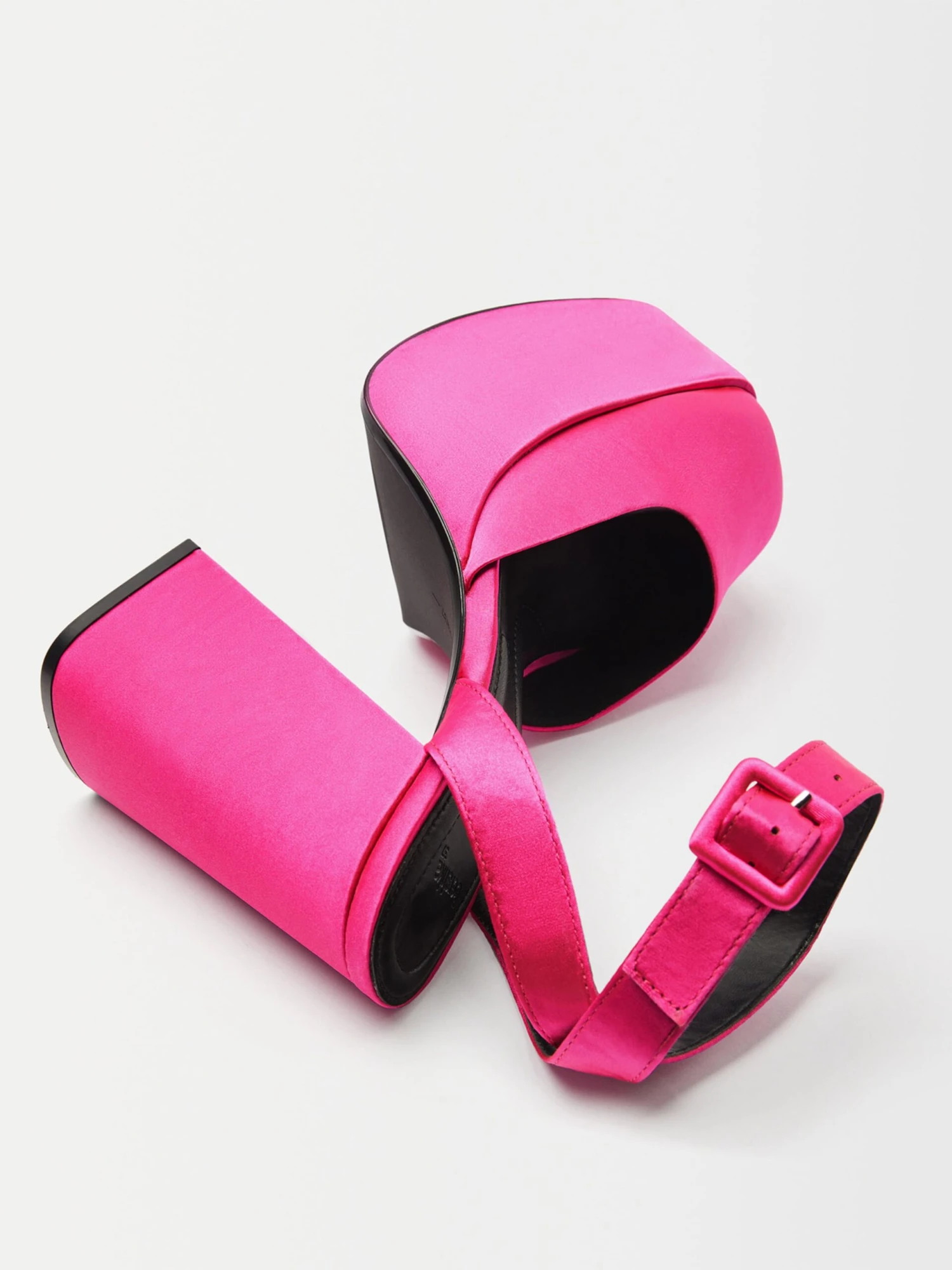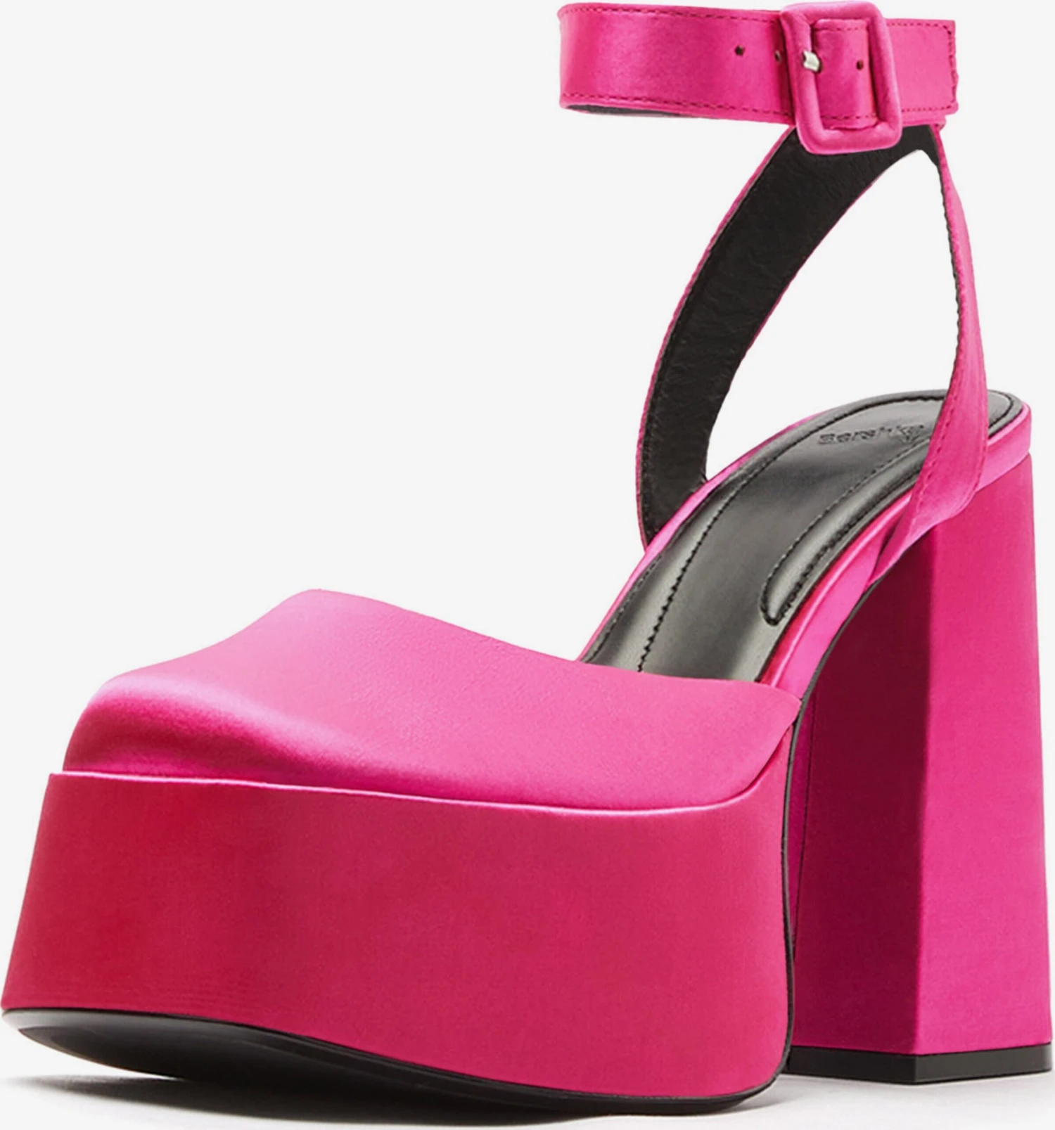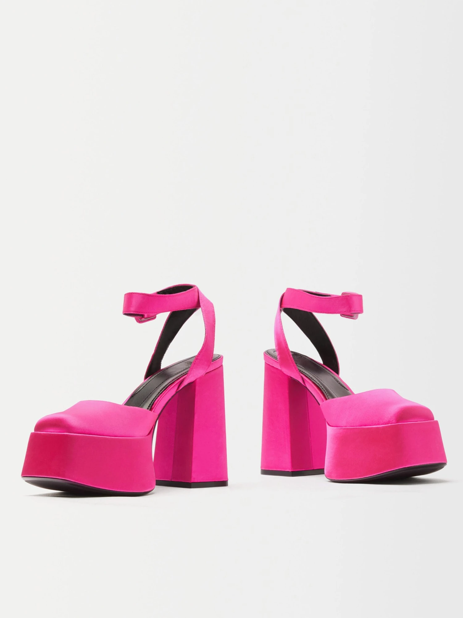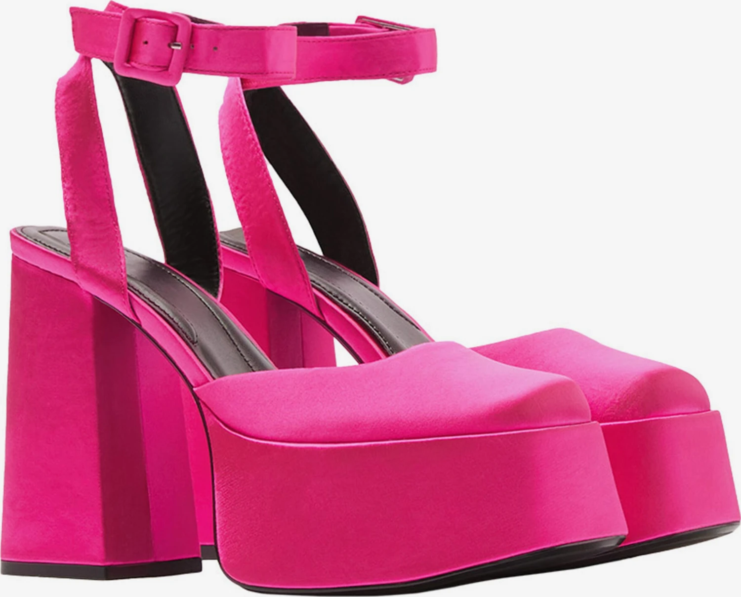 EffenBlokhakMet plateauVierkante neusPumps met enkelbandjeGespOp staal nadenGladde stofFlexibele zoolTextielRiemsluiting
