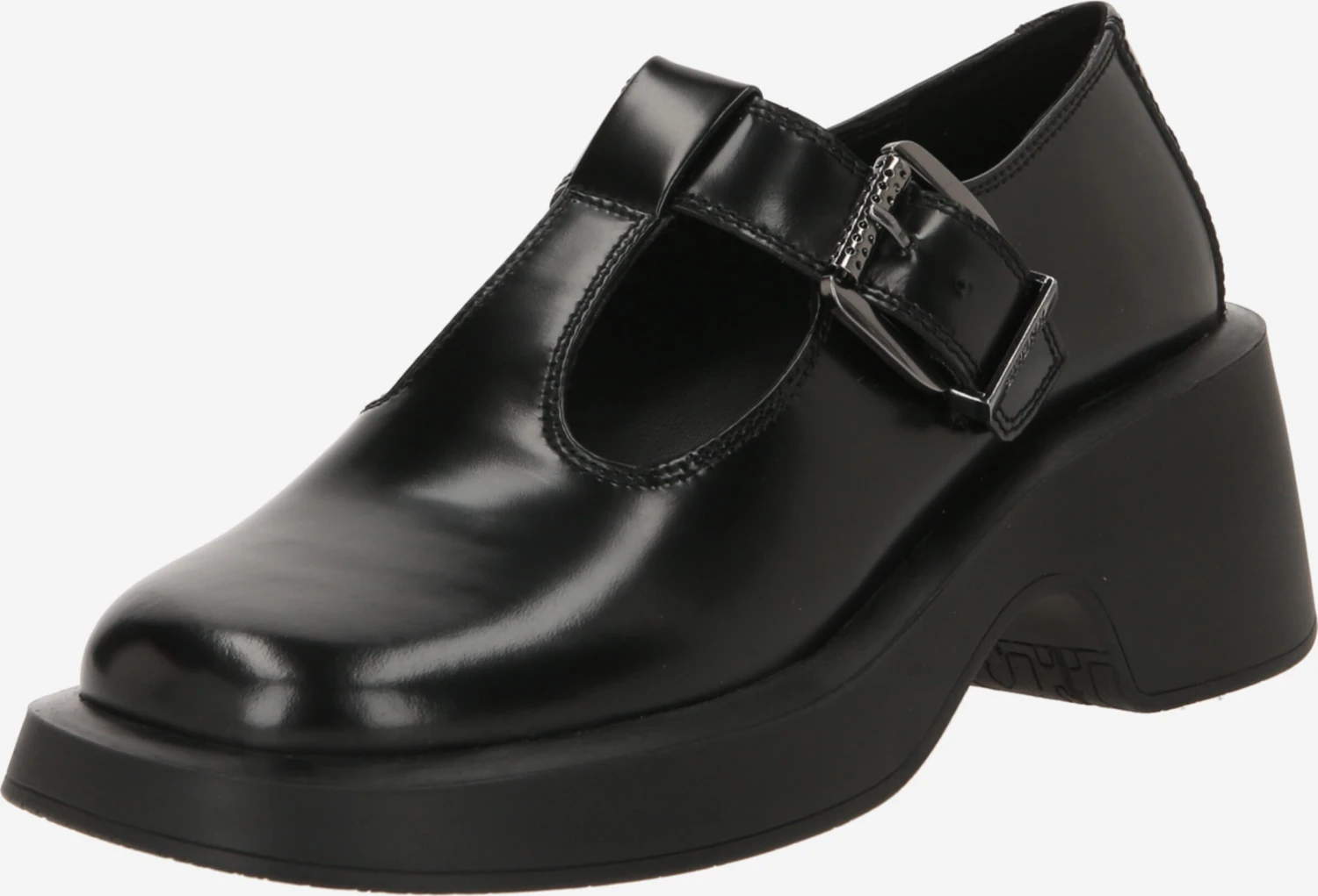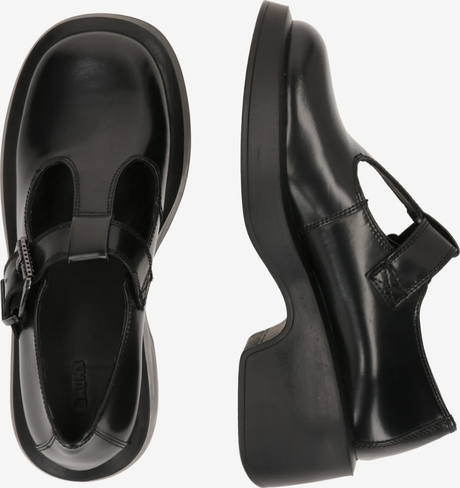 EffenLeerBlokhakMet plateauRonde neusProfielzolenVerstelbare riemenVersterkte hakGladde stofStevige stofFlexibele zoolGlad leerRiemsluiting