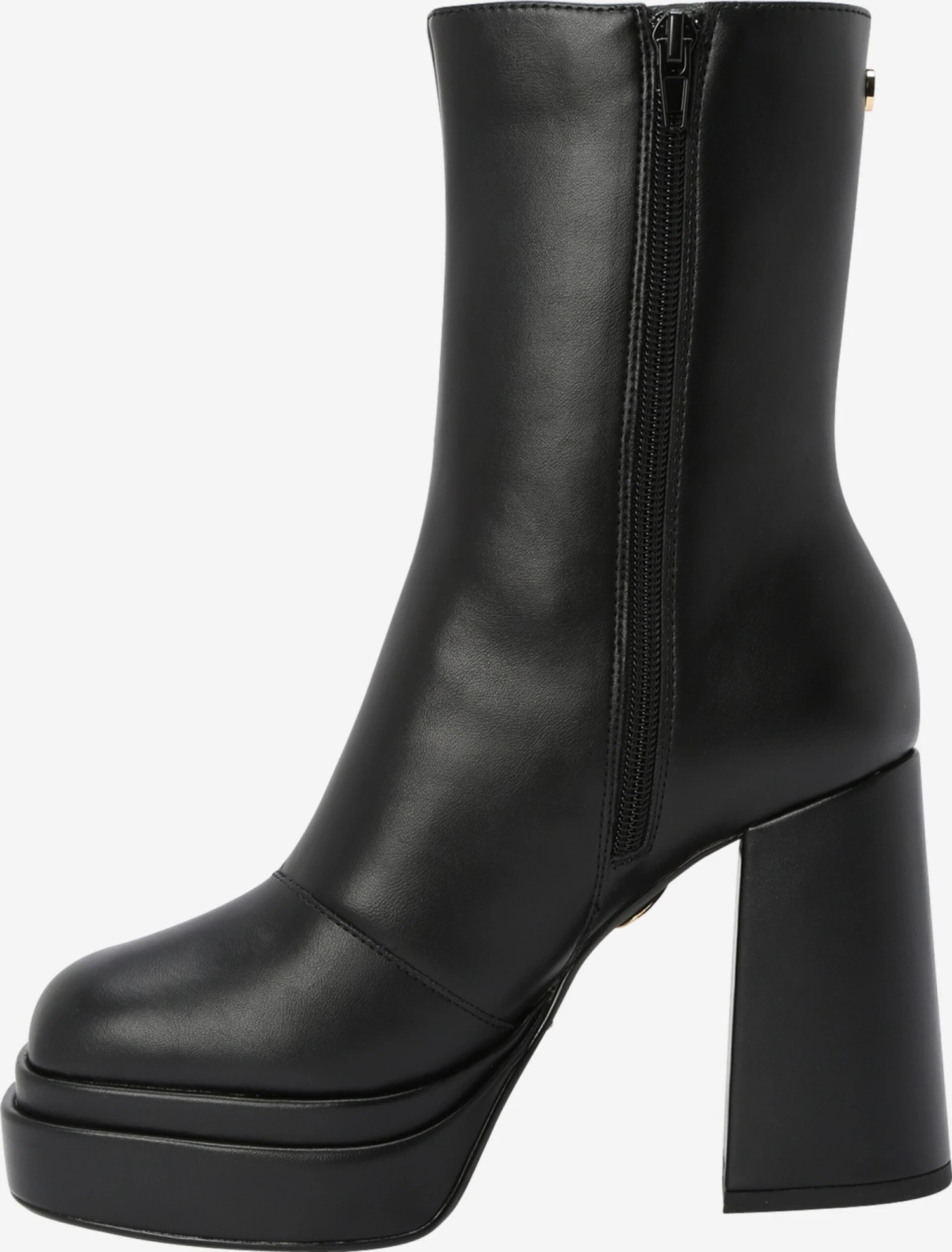 EffenBlokhakMet plateauVierkante neusRitszakken aan de zijkantProfielzolenVersterkte hakStevige stofFlexibele zoolImitatieleerRitssluiting