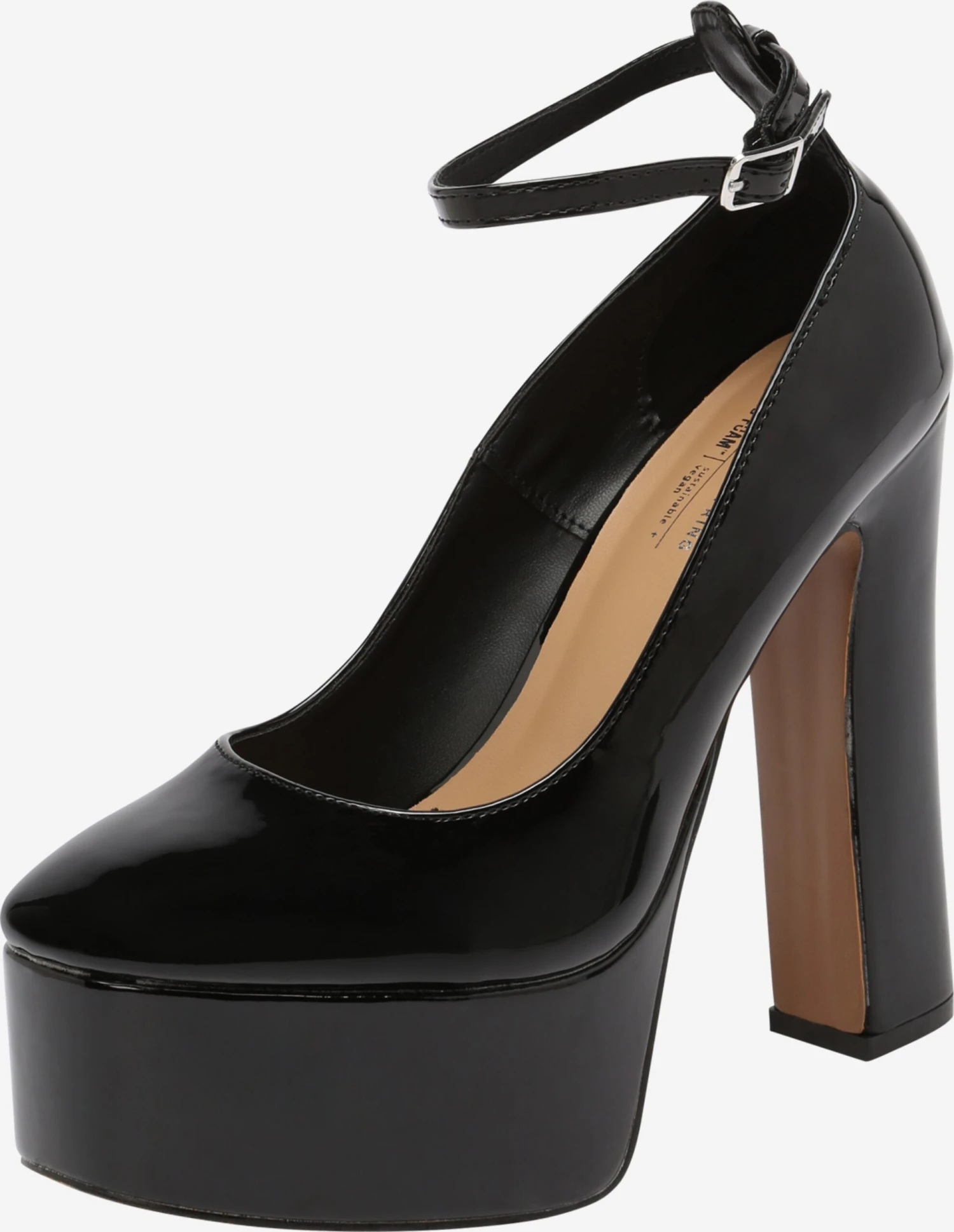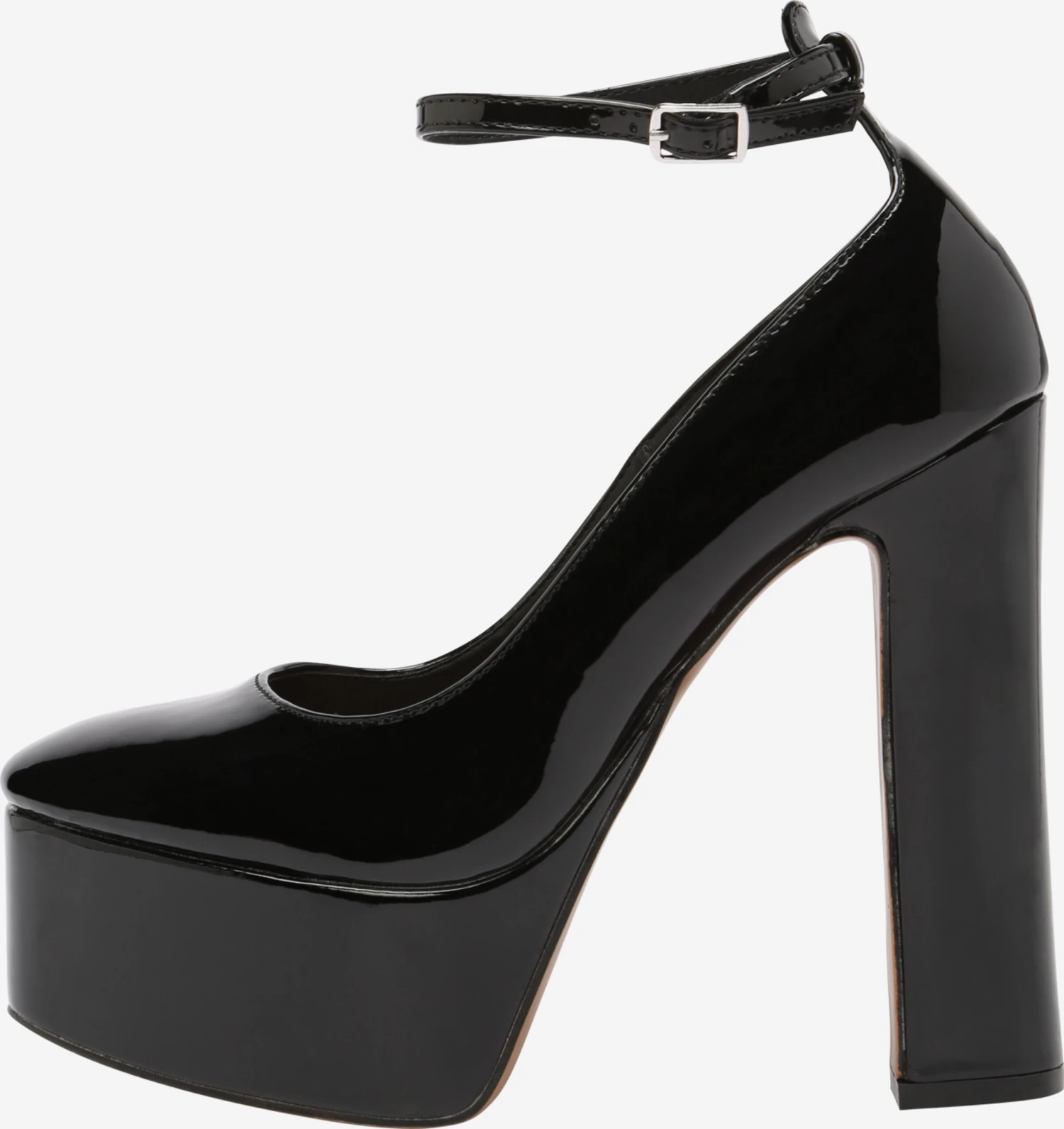 EffenBlokhakMet plateauRonde neusPumps met enkelbandjeEnkelbandenVersterkte hakGlanzendGladde stofLakGesp