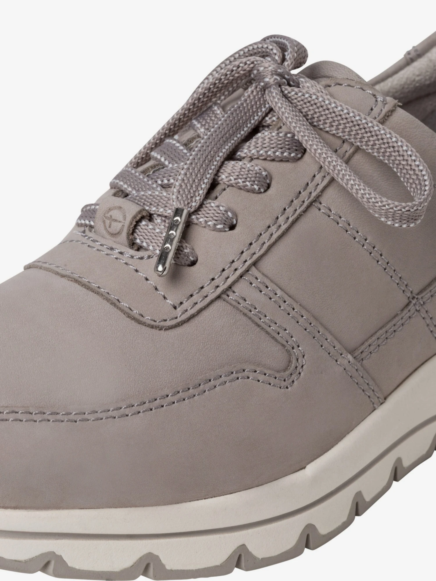 EffenLeerSleehakRonde neusGevoerdVetering met 5 gatenProfielzolenHielbandUitneembare zoolOp staal nadenGewatteerde randLabel preegdrukStevige stofFlexibele zoolAntislipSuèdeSnoersluiting