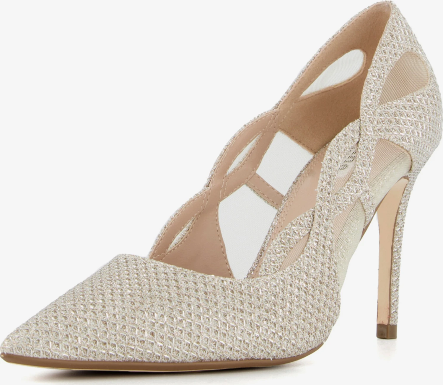 EffenStilettoSpitse neusPumps met enkelbandjeProfielzolenVersterkte hakGeschulpte zoomMeshGlitterendFlexibele zoolNon-slipMeshSlip