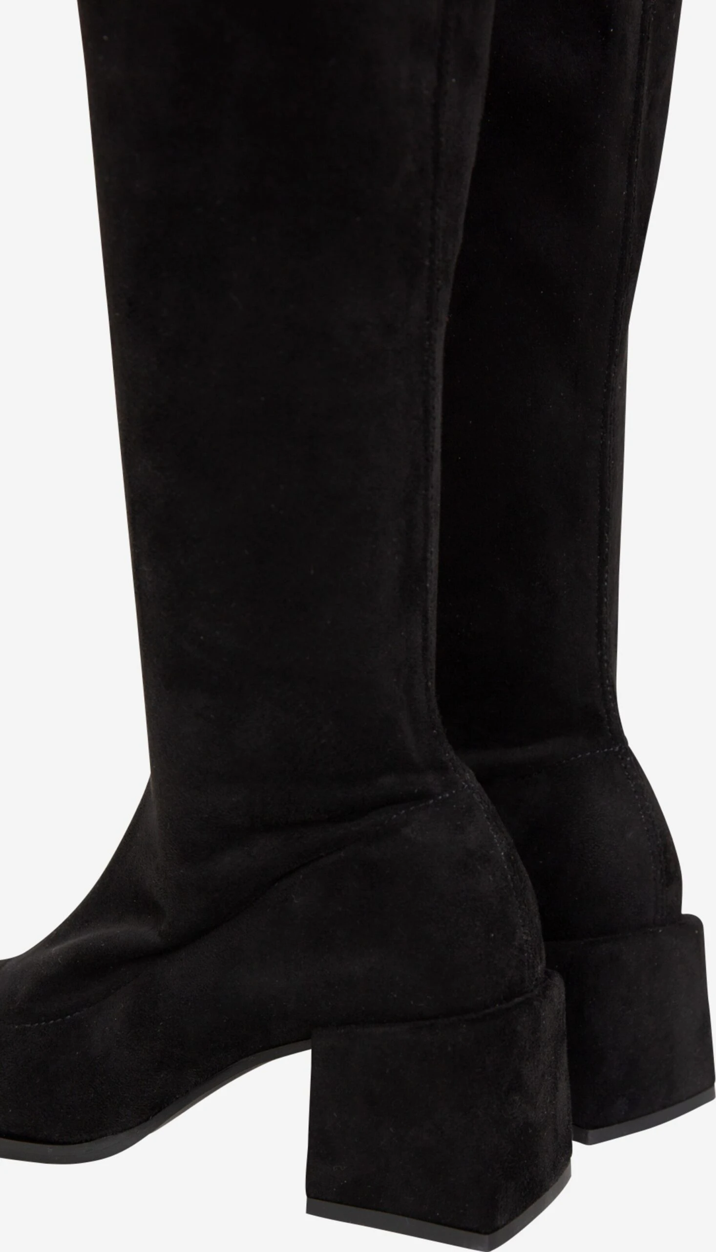 EffenImitatielederBlokhakVierkante neusPumps met enkelbandjeElastische insertsSiernaadOp staal nadenVelours lookImitatieleerSlip