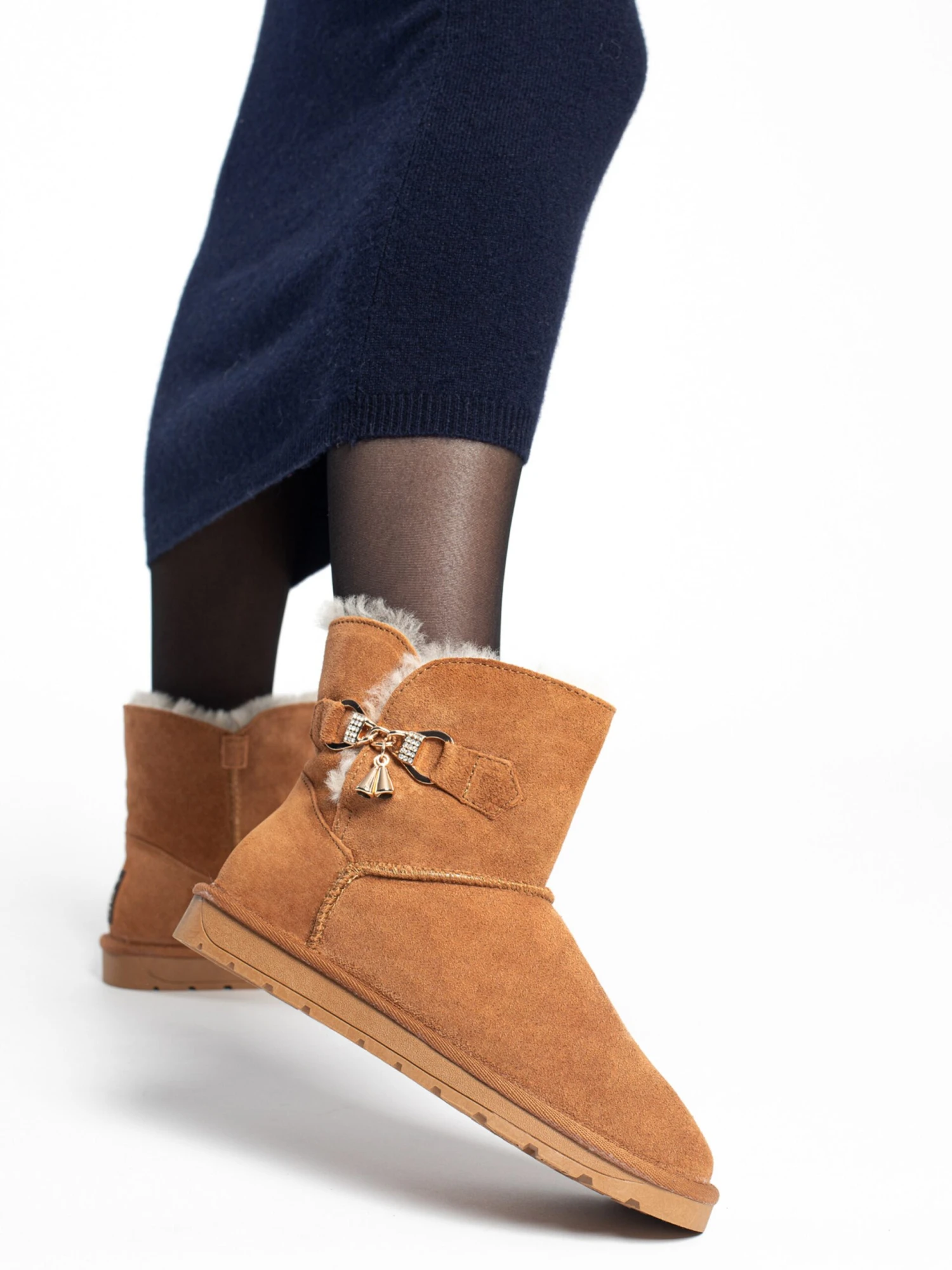 Buitenmateriaal: LeerBinnenzool: LamsvachtBuitenzool: RubberVoering: LamsvachtBevat niet-textiele delen van dierlijke oorsprong: Ja