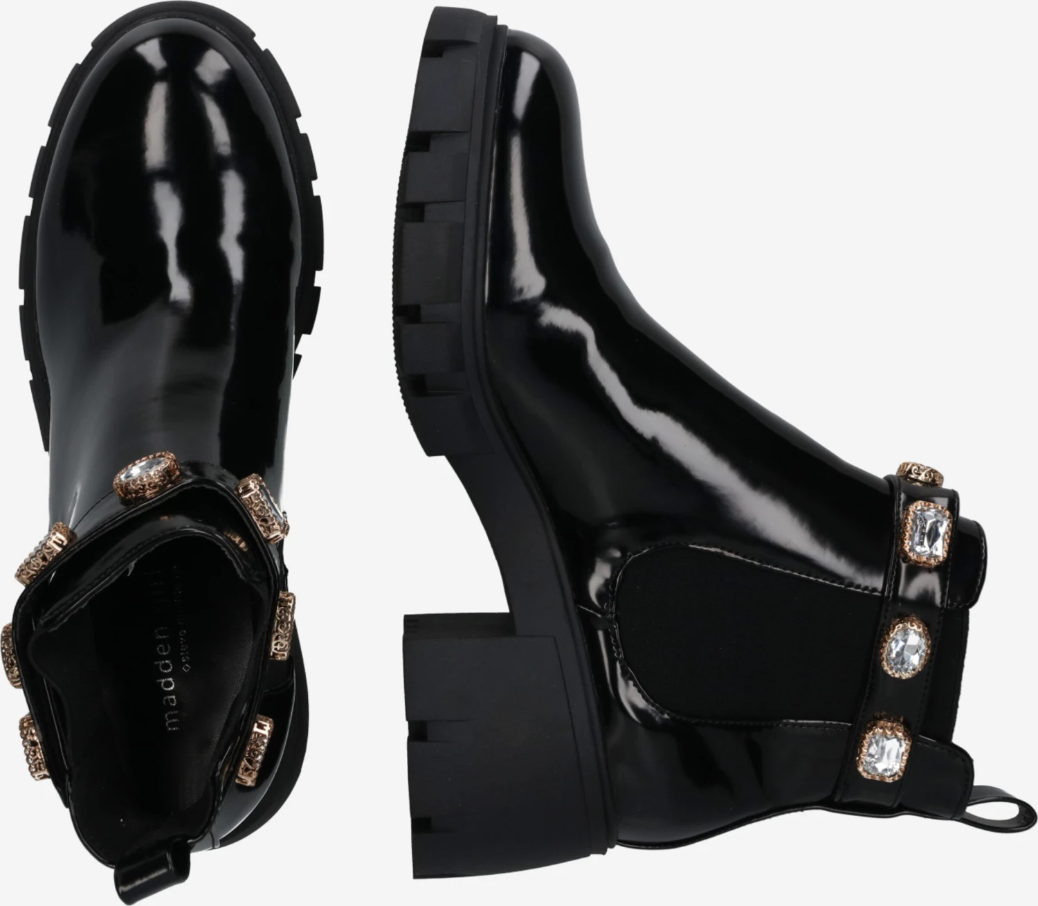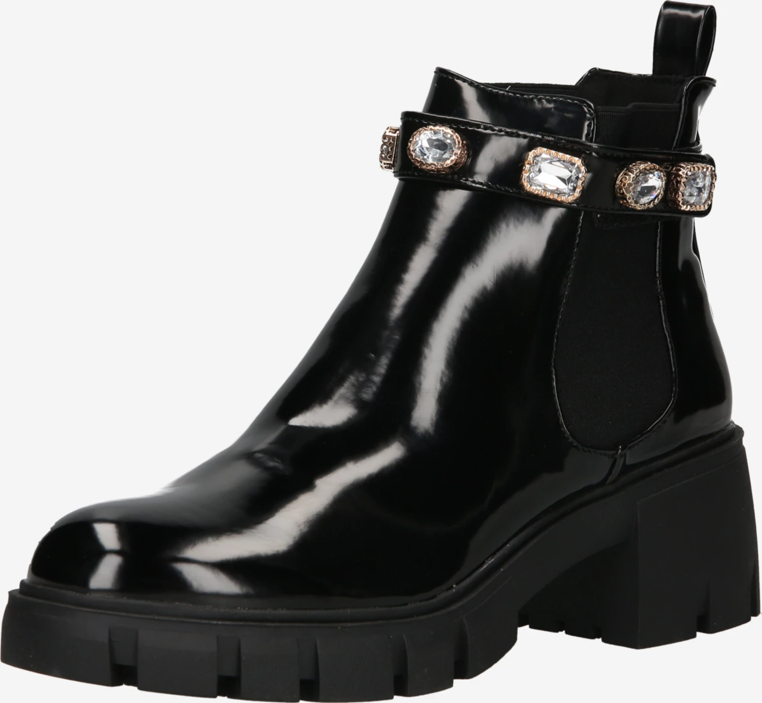 EffenBlokhakMet plateauRonde neusElastische inzetstukkenProfielzolenVersterkte hakHielbandGlanzendApplicatiesOp staal nadenFlexibele zoolImitatieleerSlip