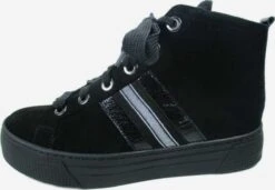 EffenLeerMet plateauRonde neusGevoerdVeteringSchuine ritsProfielzolenVersterkte hakOp staal nadenBuigzame gripStevige stofFlexibele zoolSuèdeSnoersluiting