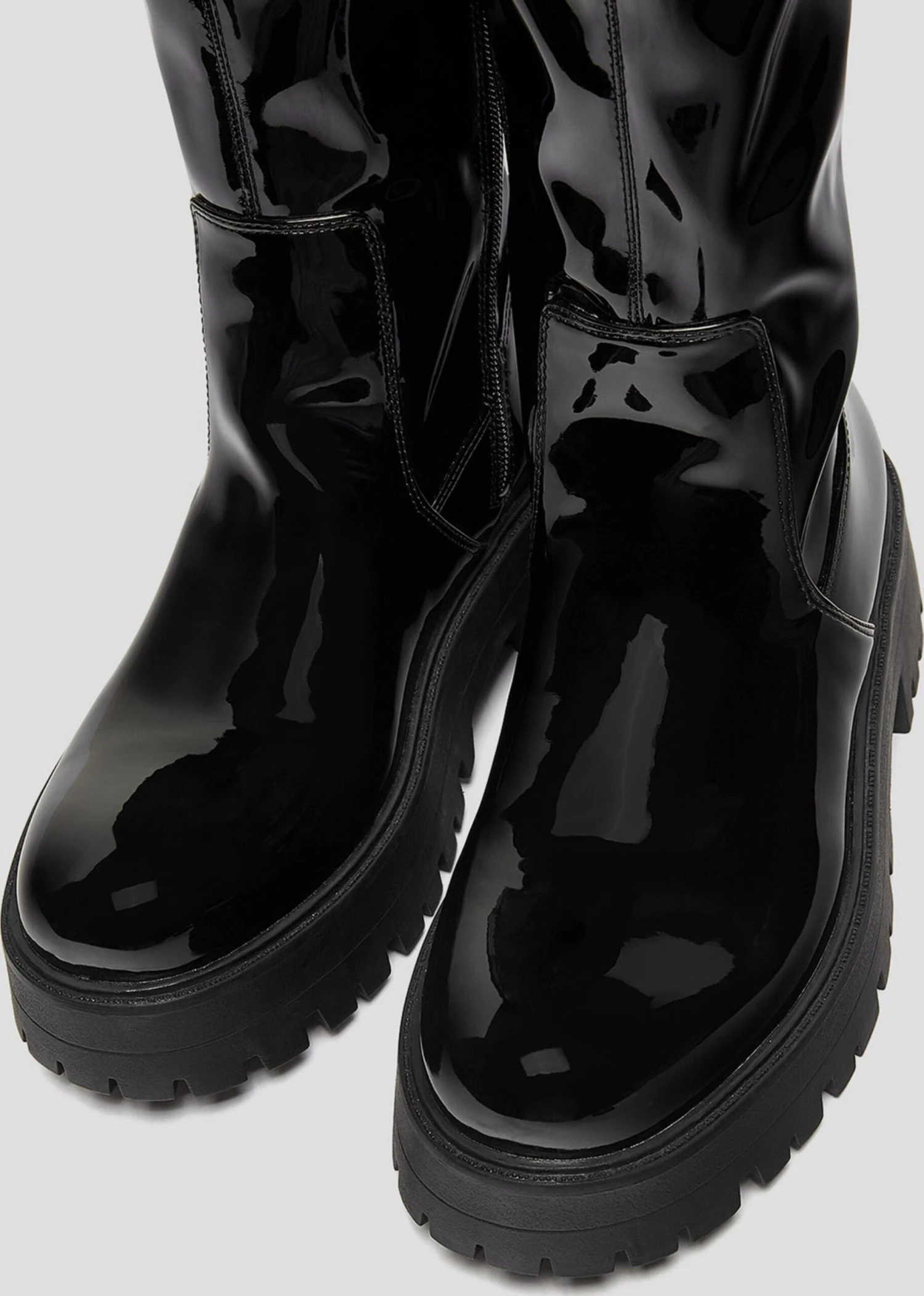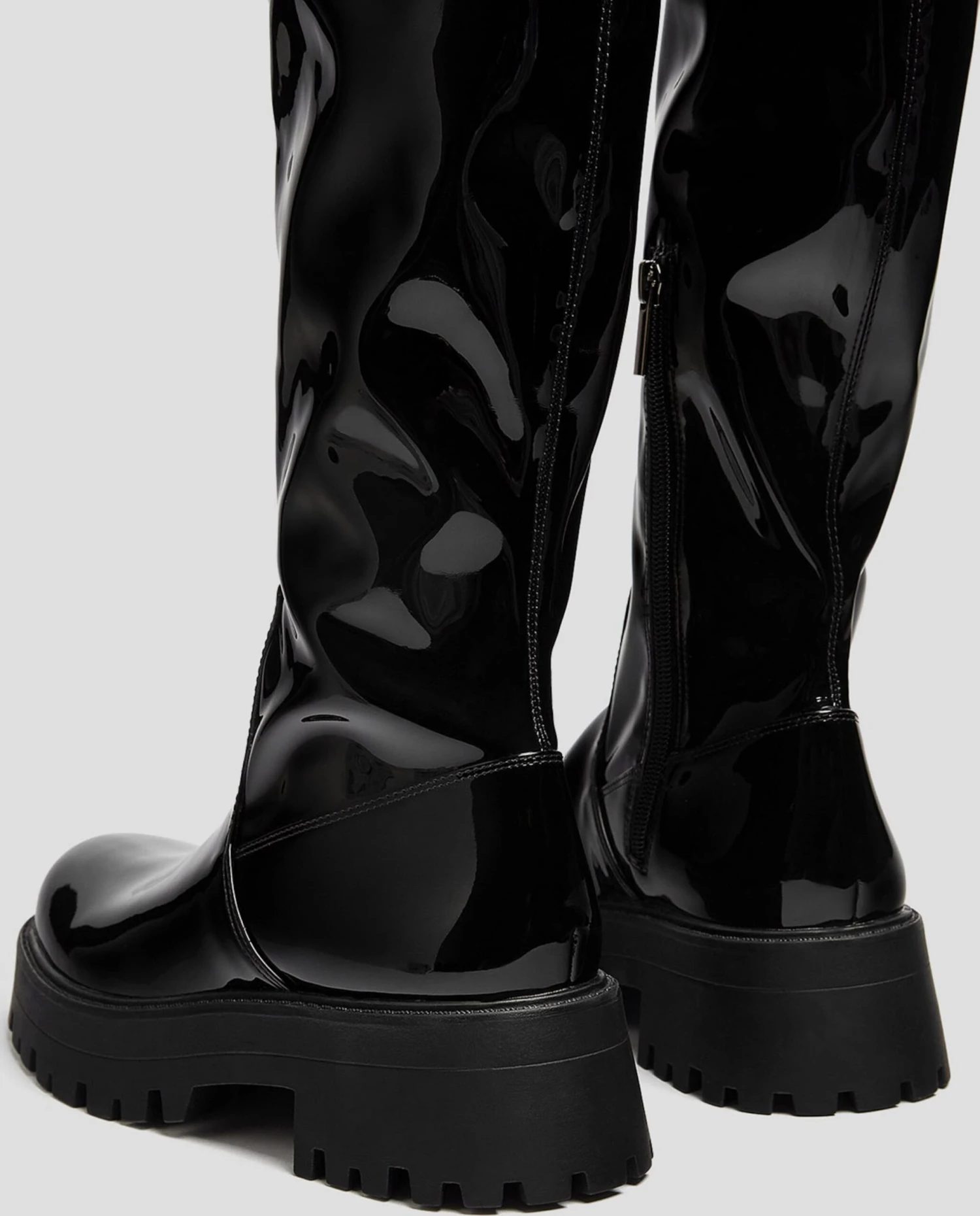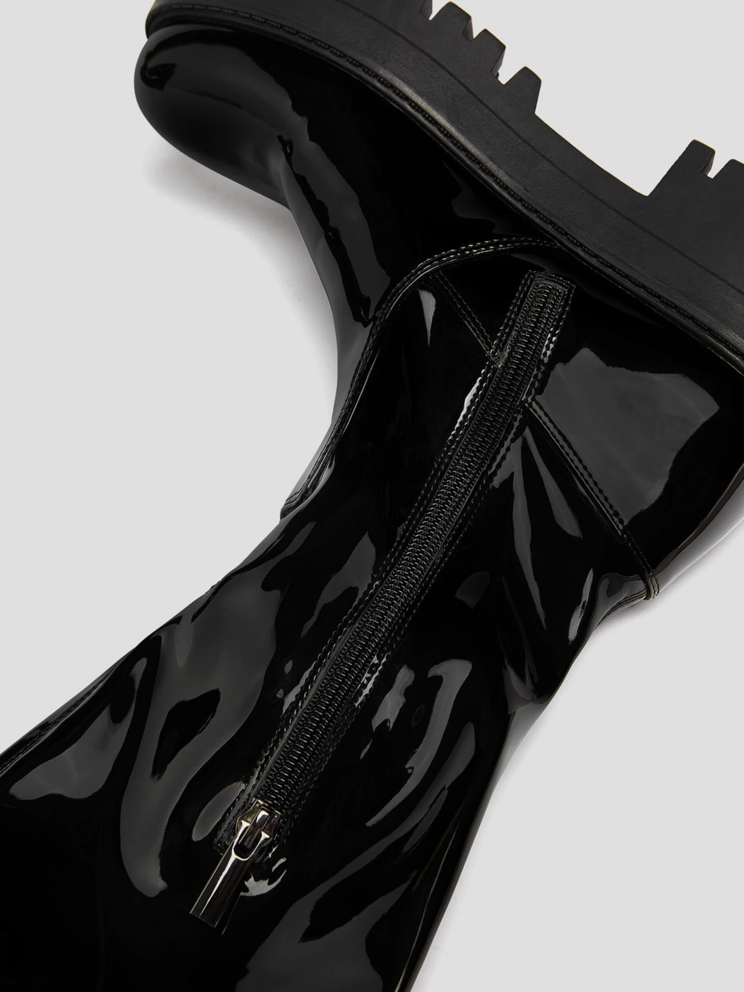 EffenBlokhakMet plateauRonde neusRitszakken aan de zijkantProfielzolenVersterkte hakGlanzendFlexibele zoolNon-slipImitatieleerRitssluiting