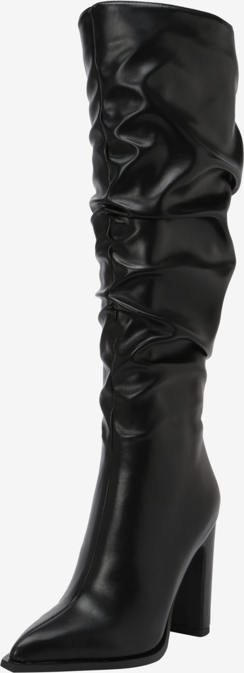 EffenBlokhakSpitse neusRitszakken aan de zijkantProfielzolenKniehoogOp staal nadenGladde stofImitatieleerRitssluiting