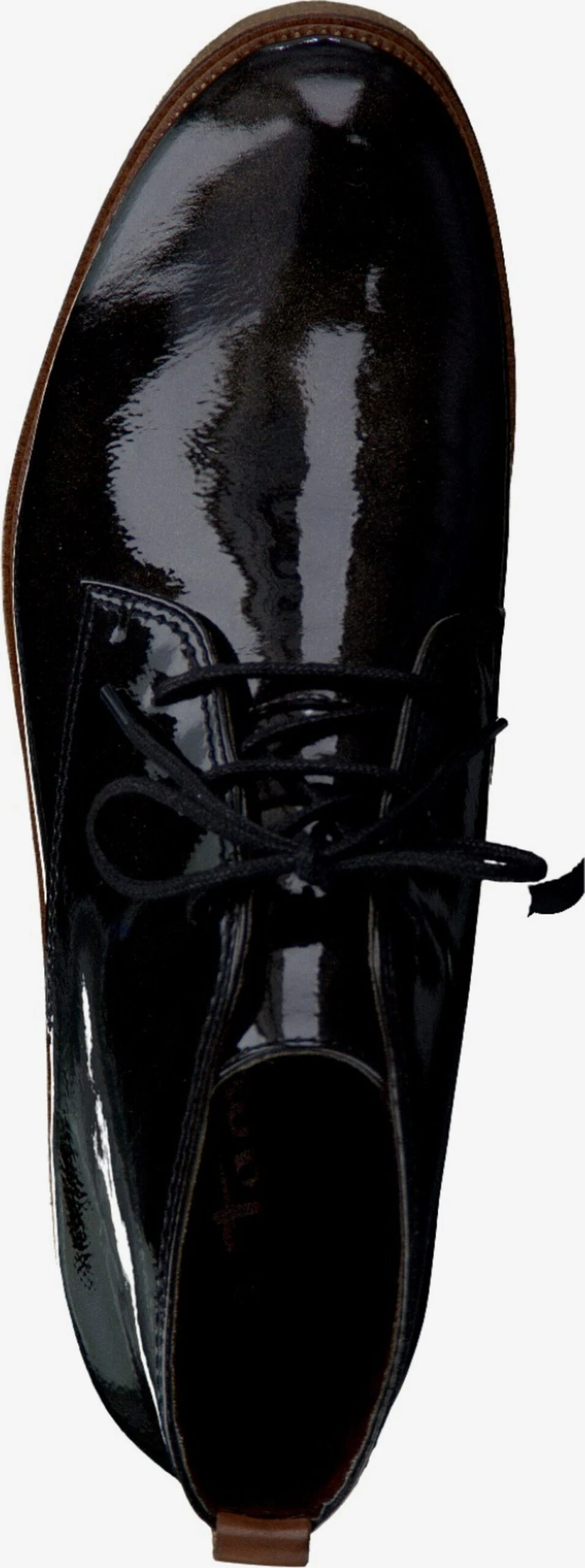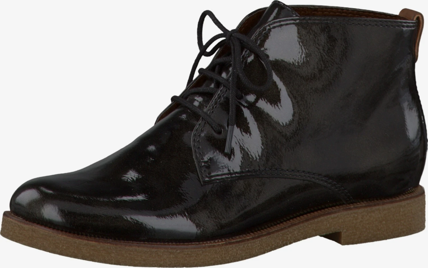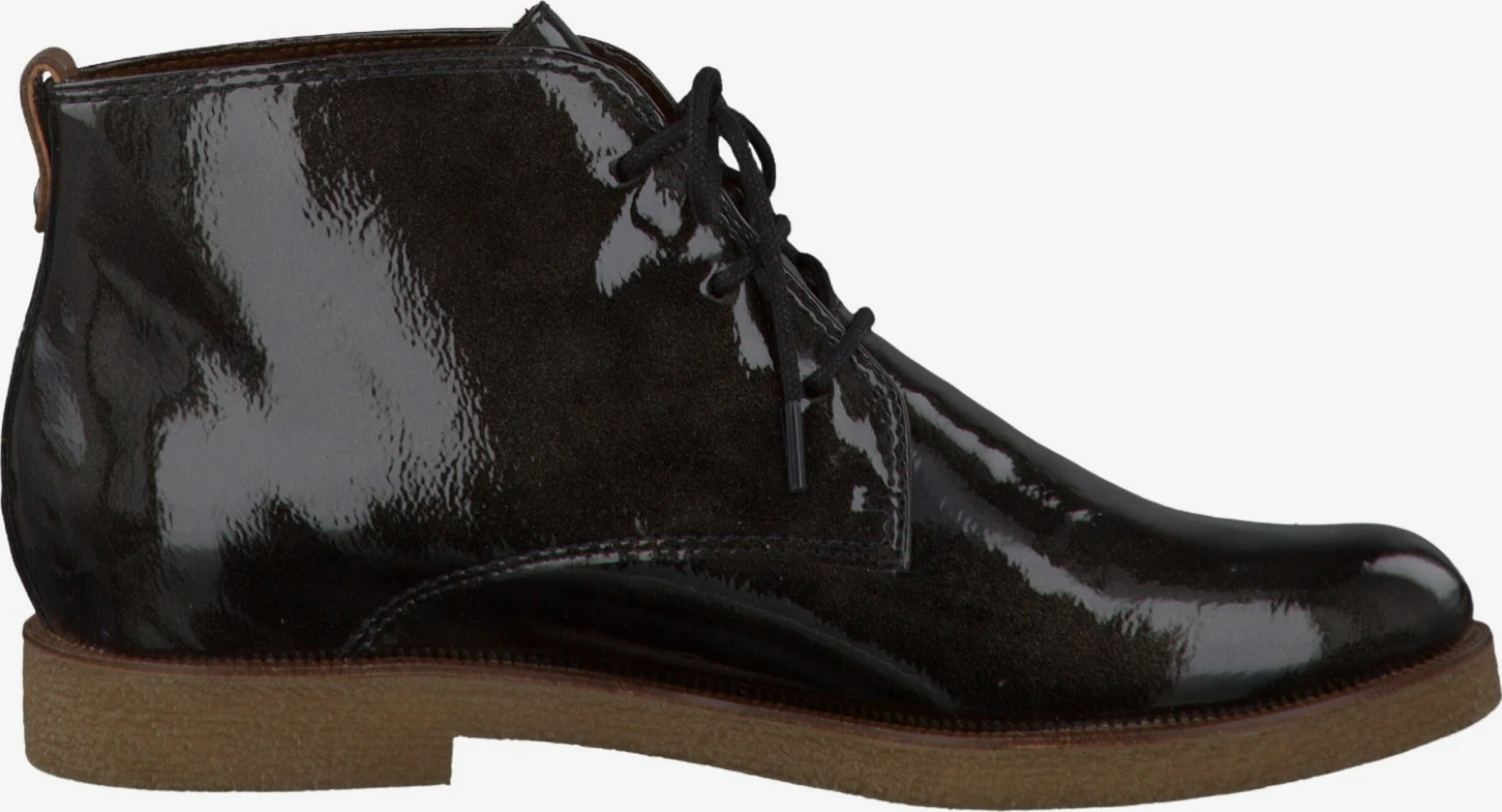 LeerBlokhakRonde neusVetering met 3 gatenVersterkte hakHielbandGlanzendOp staal nadenAnti-slip zoolGlad leer