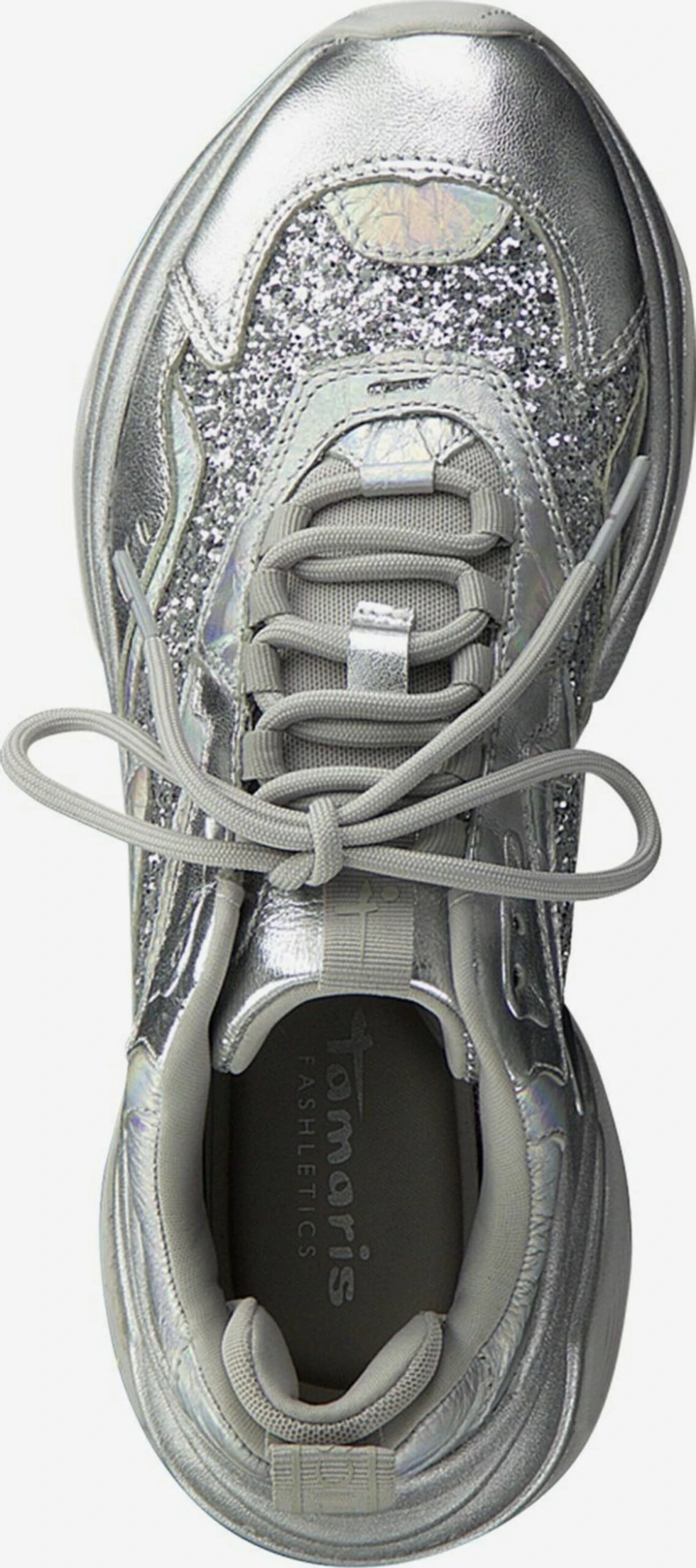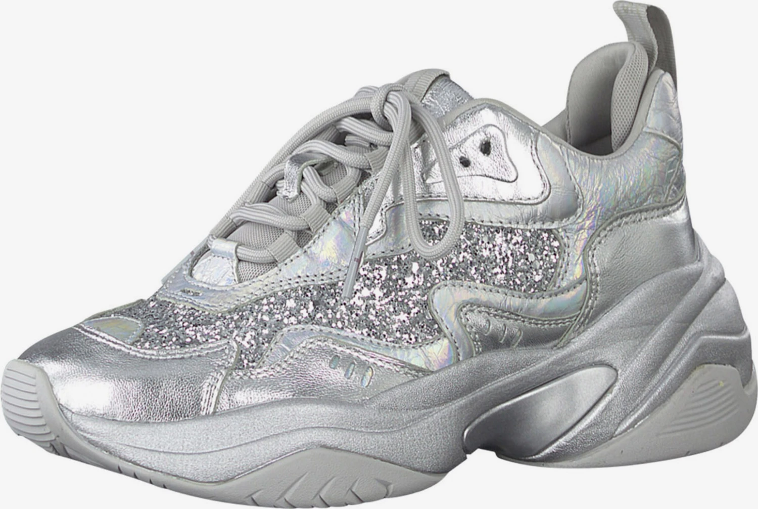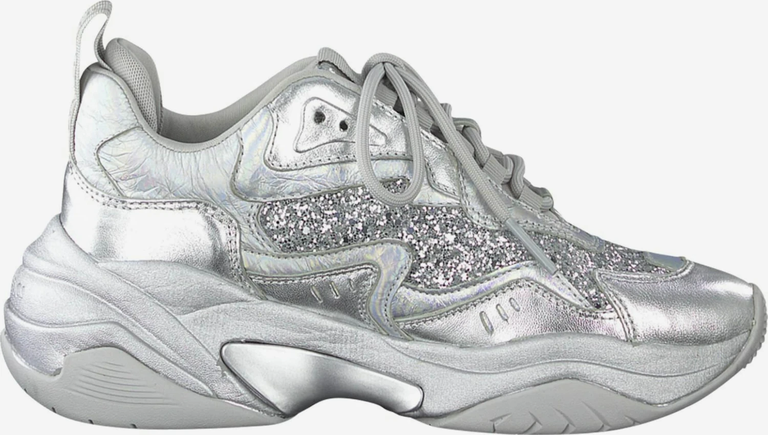 EffenLeerMet plateauRonde neusVersterkte hakMateriaal mixHielbandUitneembare zoolGlinsterendOp staal nadenGewatteerde randMetallic lookImitatieleerGlad leerSnoersluiting
