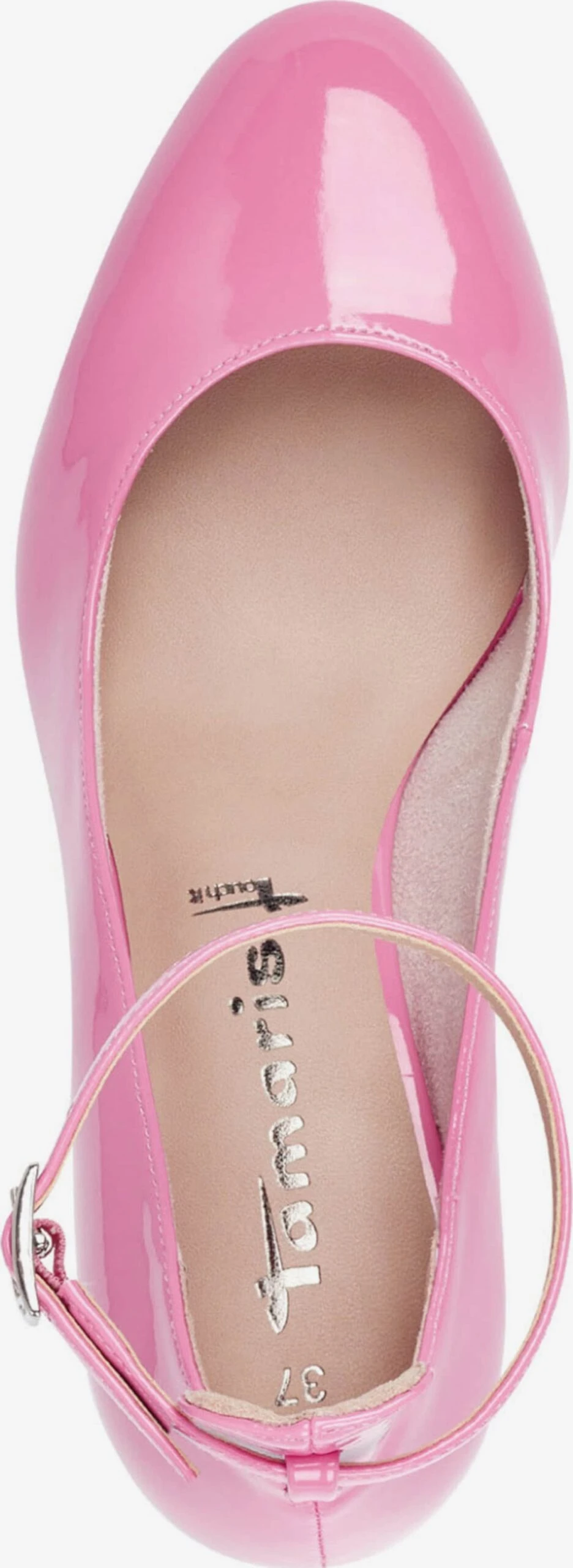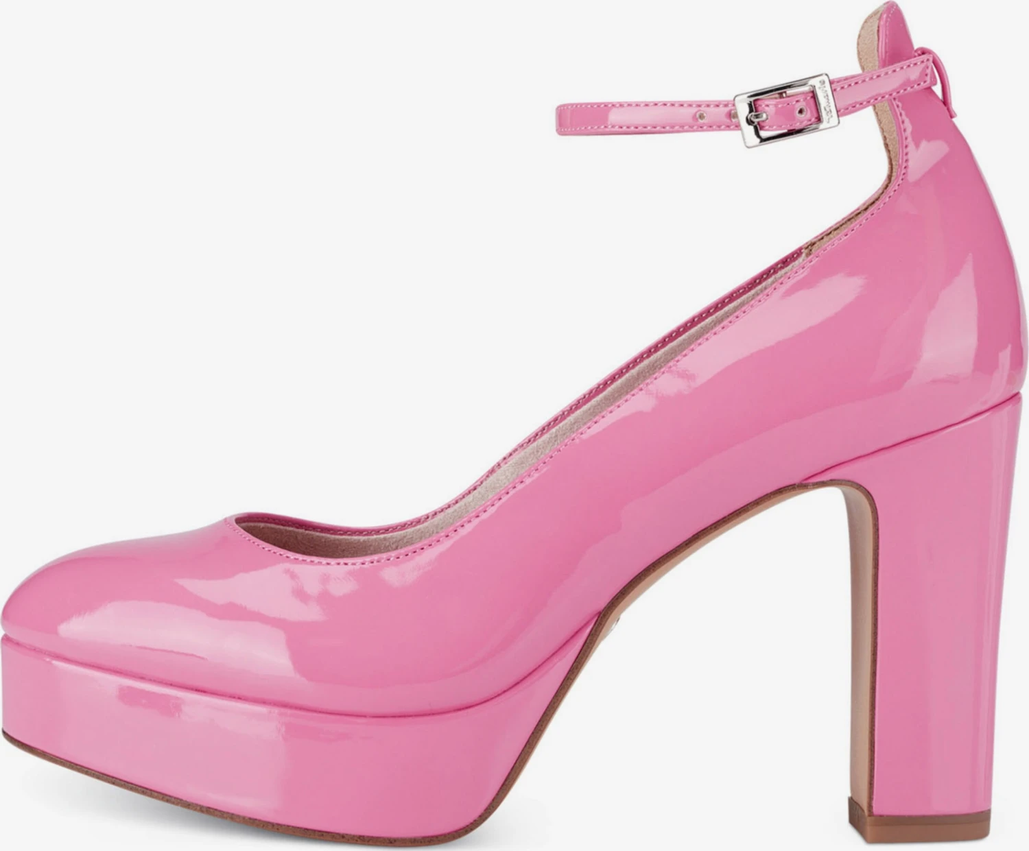 EffenBlokhakMet plateauRonde neusPumps met enkelbandjeVersterkte hakGlanzendGladde stofFlexibele zoolLakRiemsluiting