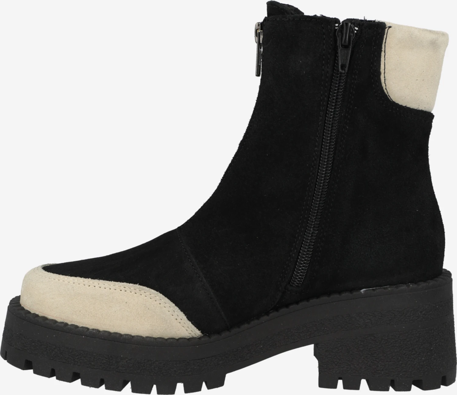 Color-BlockingLeerBlokhakRonde neusRitszakken aan de zijkantProfielzolenVersterkte hakStevige stofNon-slipSuèdeRitssluiting